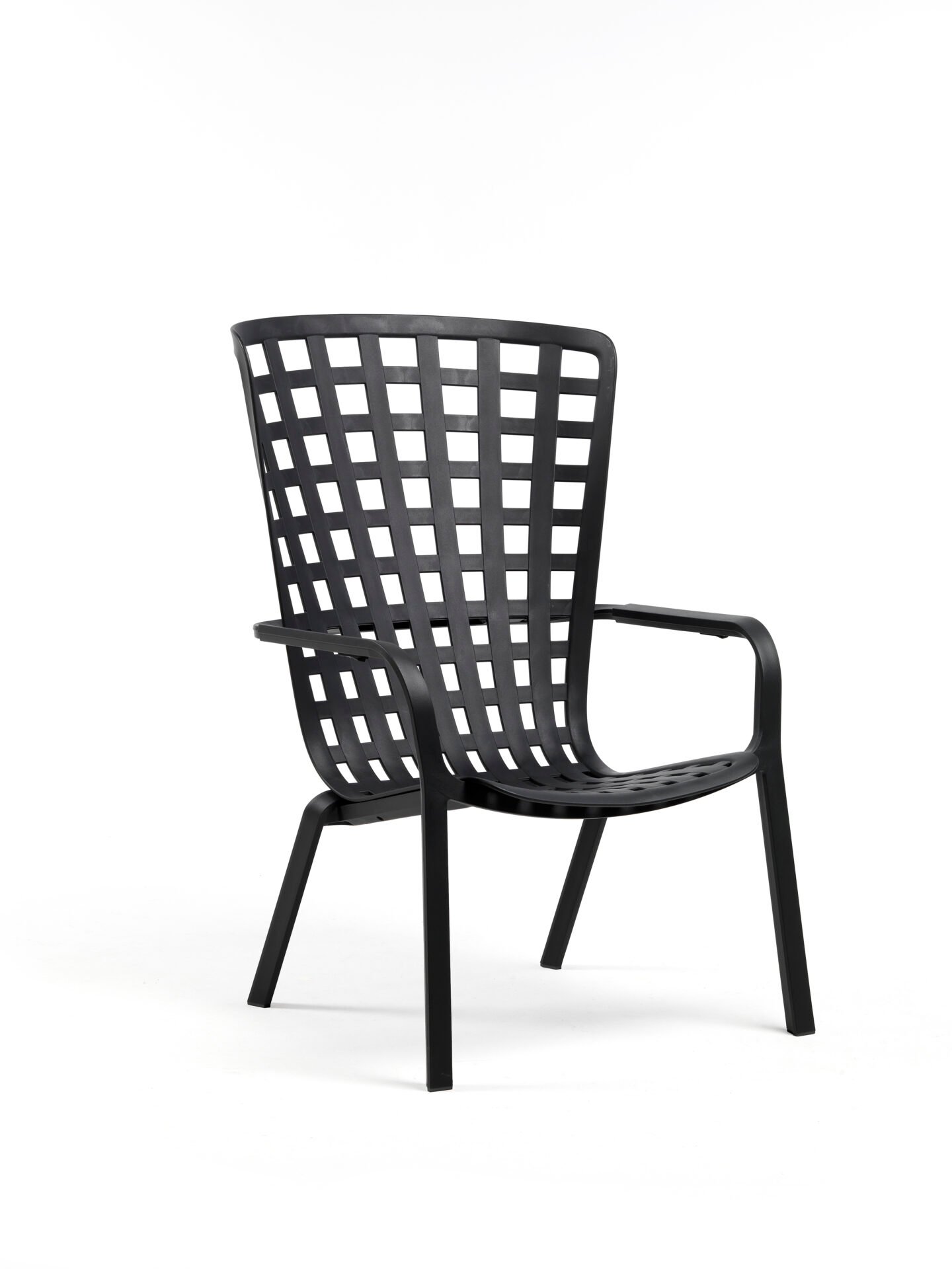 Folio is a relaxation armchair for outdoor use made of fiberglass resin, with a perforated square pattern and a matt finish. With an enveloping back seamlessly connected to the generously lowered seat, the armchair is like a single, refined structural embrace, reclining to two comfortable positions.
