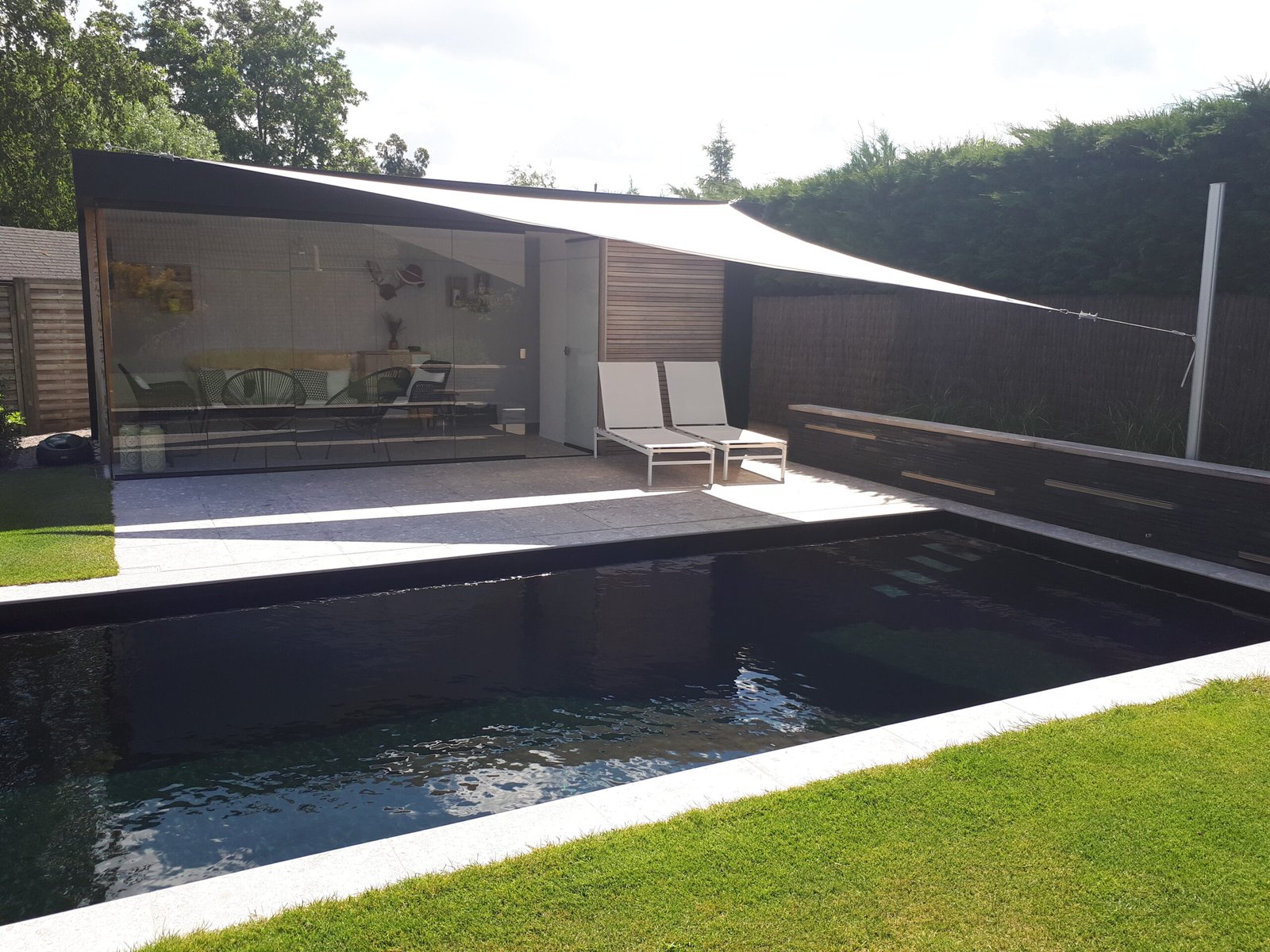 Even when larger areas have to be put in the shade, Umbrosa offers an easy solution for larger surfaces. Thanks to the ingenious sliding mechanism ofIngenua, you can easily adapt the sail to the circumstances and the environment. The simple lines and modern shapes of Ingenua shade sails are combined with an excellent performance in terms of wind-resistance.