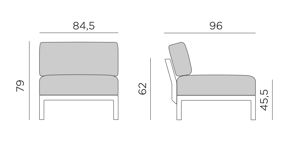 Elemento centrale of modular system of upholstered seats which can be configured as desired.
