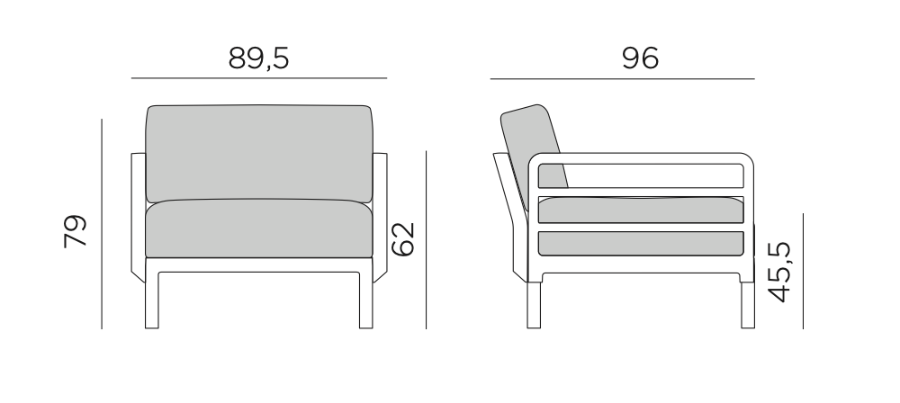 FRAME: regenerated uniformly colored fiberglass polypropylene resins with UV additives. Backrest and armrests can be attached on all sides of the seat with a screwless fixing system.