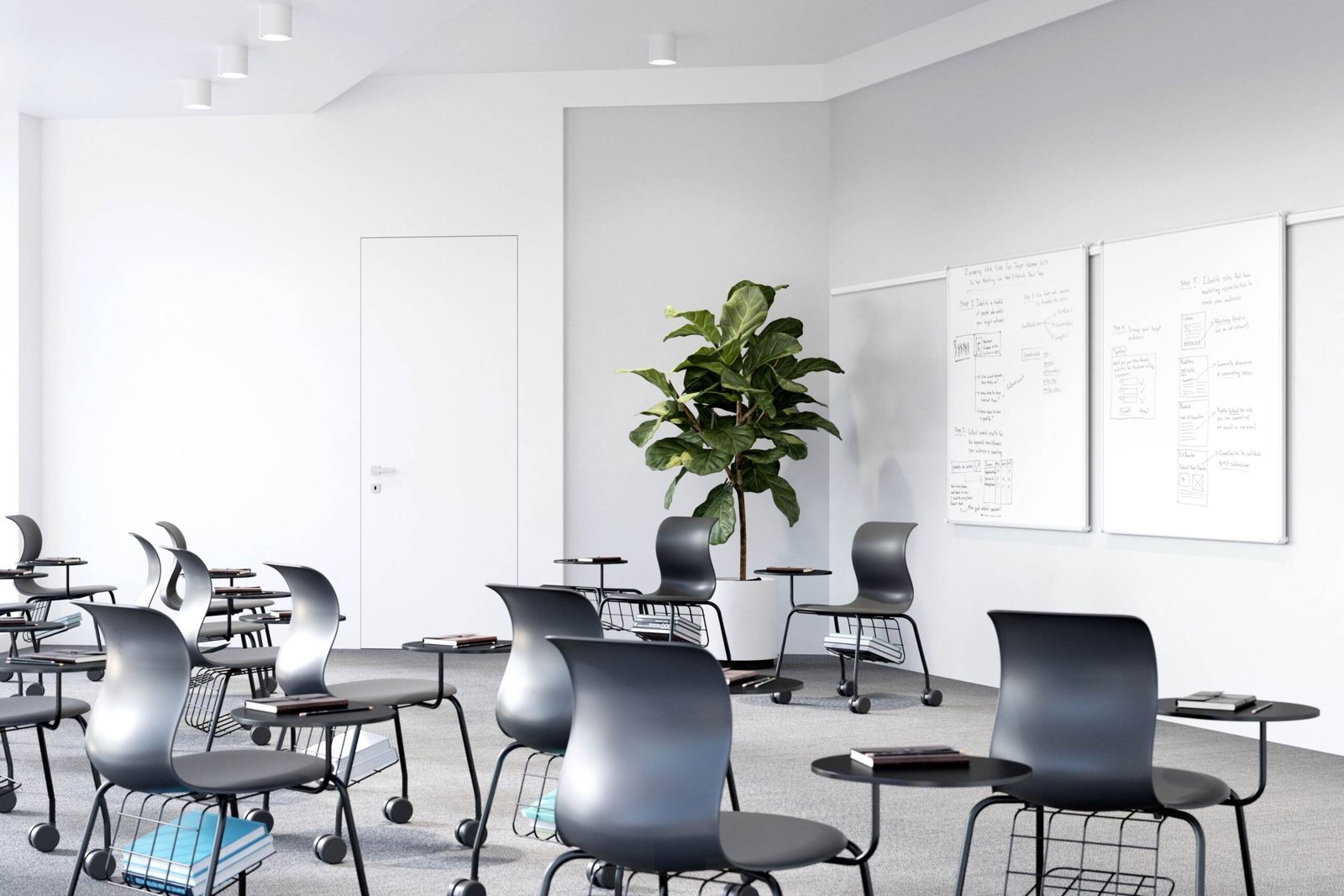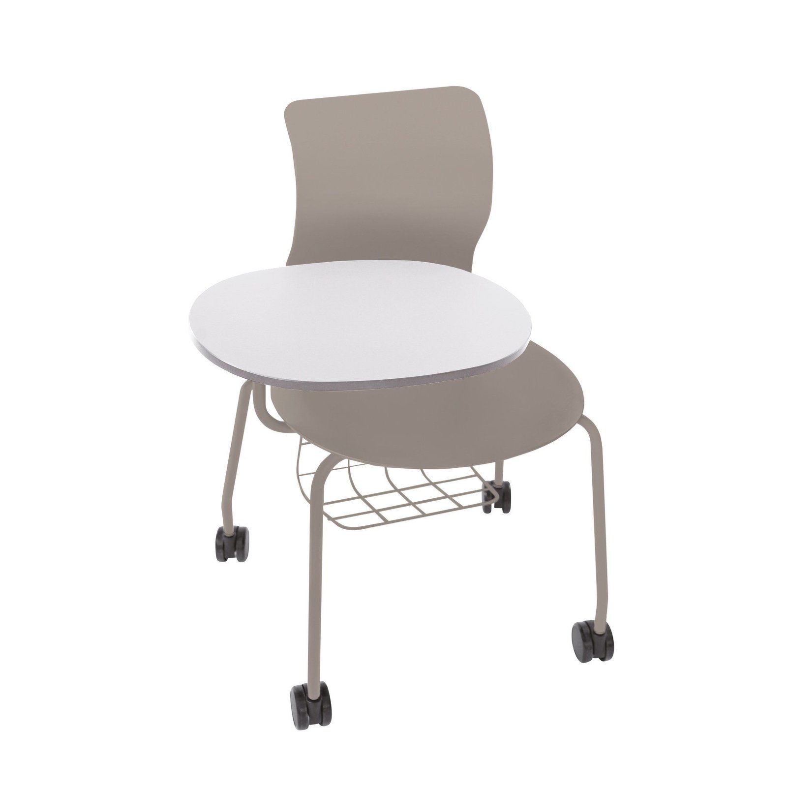 The four-legged chair with casters is an all-rounder for continuing education rooms, teachers’ and seminar rooms, that allows for flexible arrangements for groups.