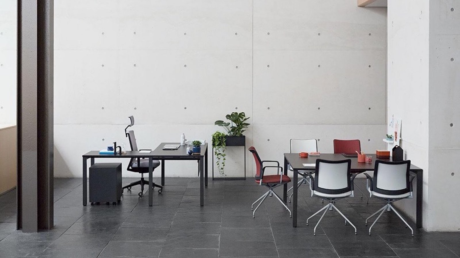 Simple layouts with rectangular lines, easy assembly and an elegant design. A collection that can provide multiple furnishing solutions adaptable to all the different needs of the workplace